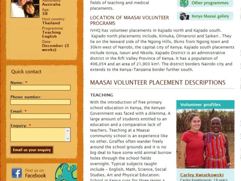 The website now manages the entire application process for IVHQ staff, with a structured workflow taking the registrations online, to the vetting and approval process, and dispatching a series of automated reminder emails prompting volunteers to submit required documentation and travel plans. The website also includes administration sections for the global country co-ordinators to manage their specific volunteers for all their programs.